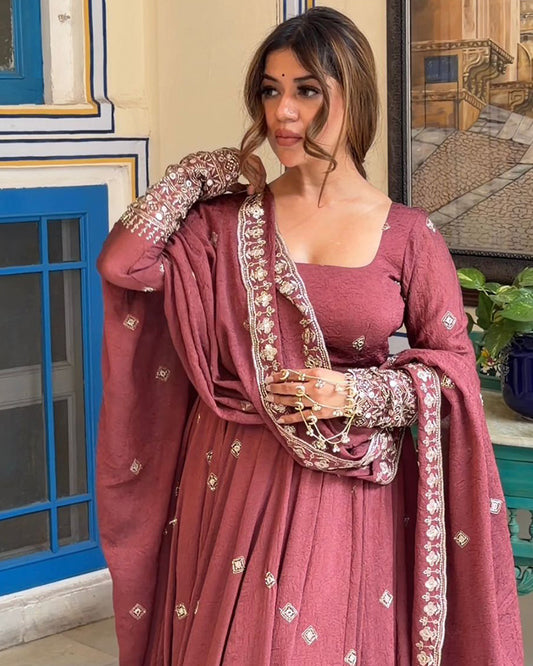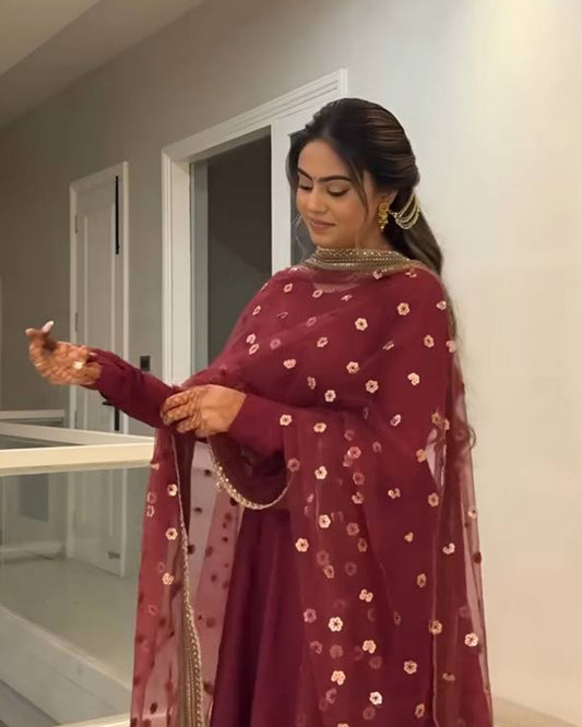 Wine Color Pure Blooming Georgette Anarkali Gown
