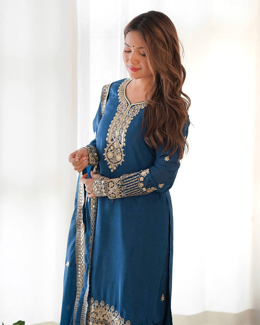 Sky Blue Color Crunchy Silk Farshi Suit