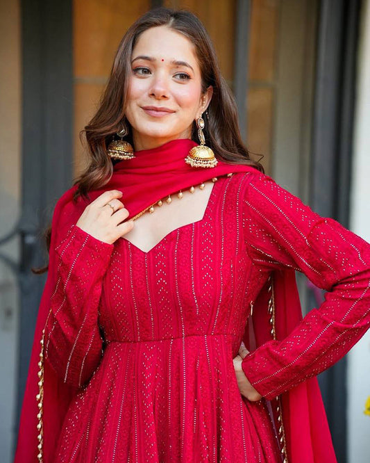 4 Color Georgette Thread Embroidered Anarkali Suit