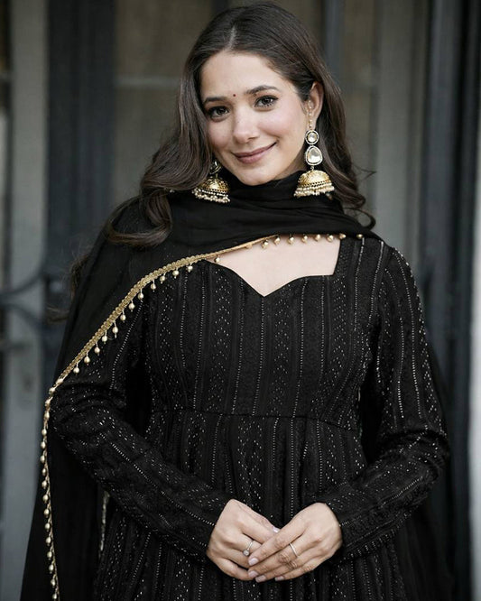 Black Color Georgette Lucknowi Three Piece Anarkali Suit