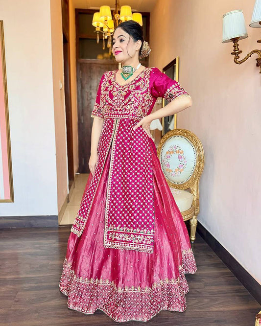 Magenta Pink Color Chinon Silk Embroidered Lehenga Choli
