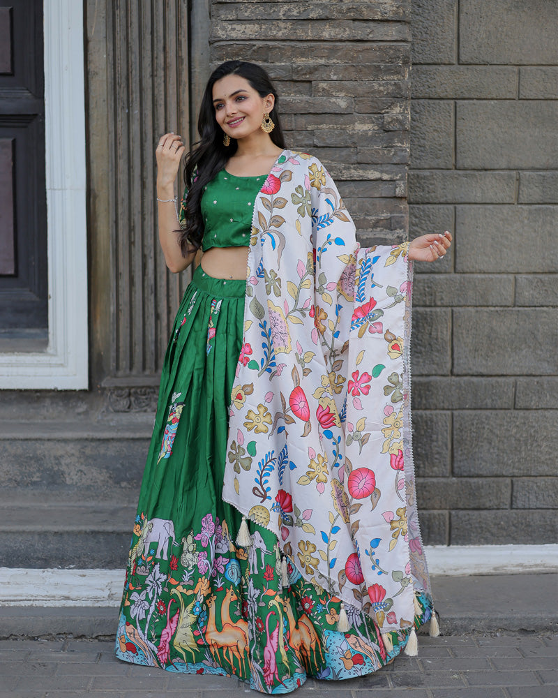 Green And White Color Designer Printed Lehenga Choli
