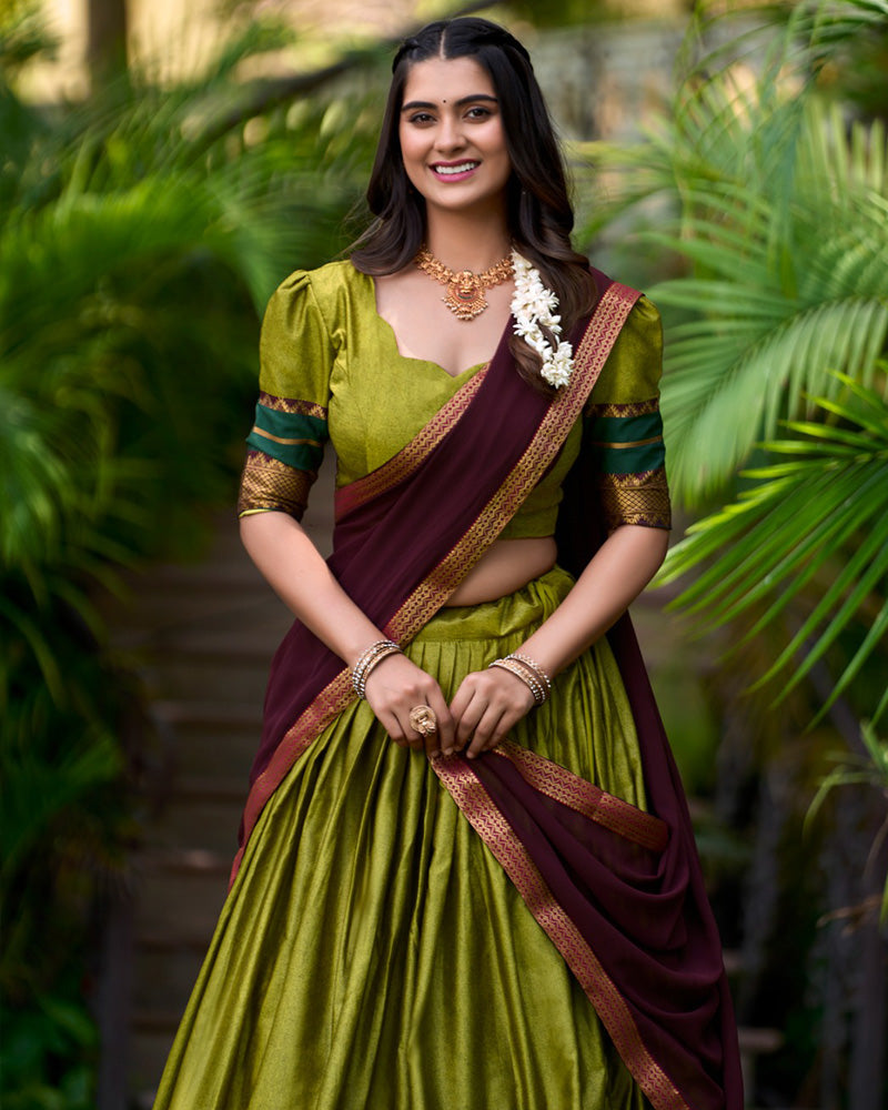 Olive Green Color Poly Cotton Half Saree