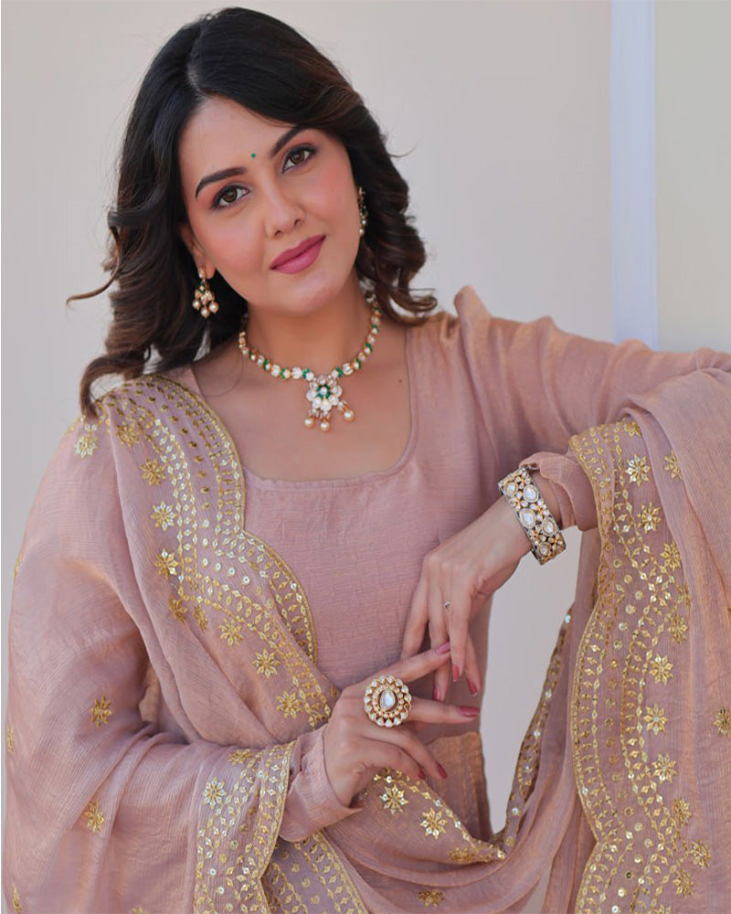 Elegant and flowy, this Peach Color Fendi Chiffon Gown features a soft, graceful silhouette perfect for special occasions. Lightweight fabric and subtle design add timeless charm to your wardrobe.