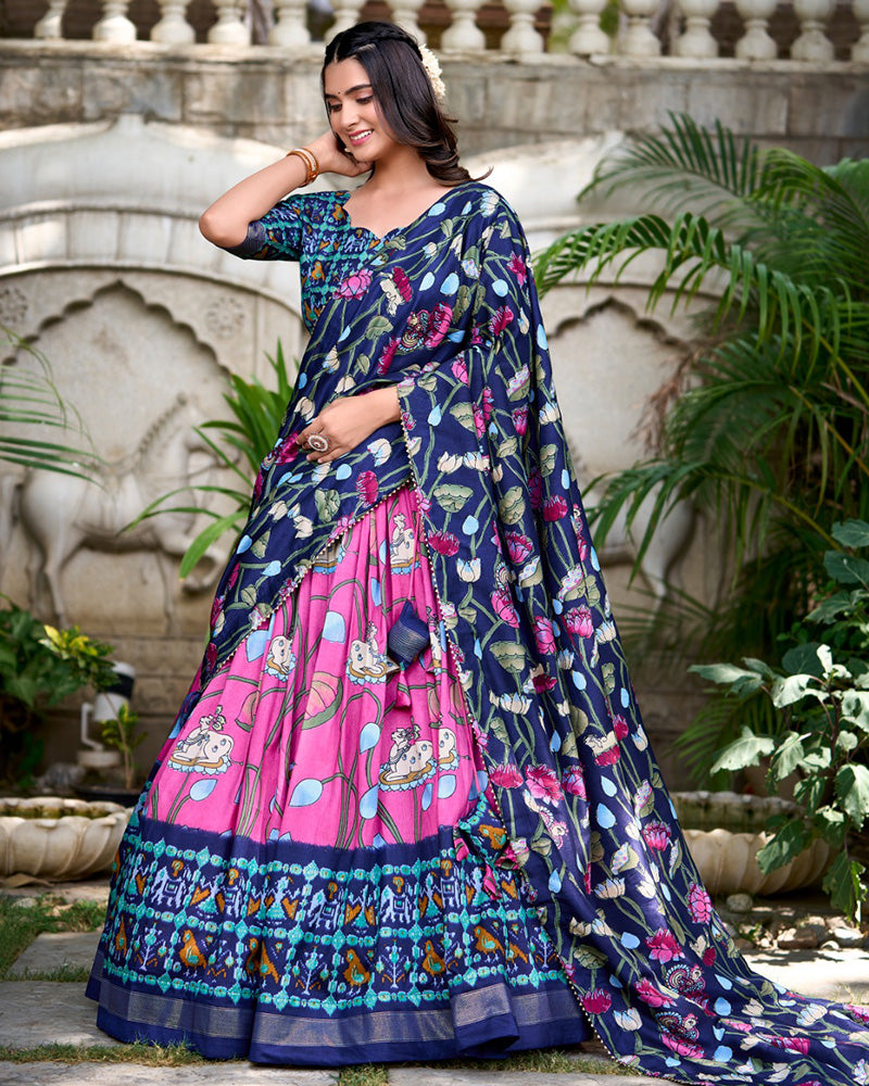 Pink Color Tussar Silk Patola Printed Lehenga Choli