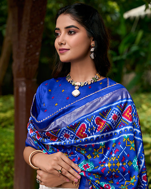 Royal Blue Color Tussar Silk Patola Printed Lehenga Choli