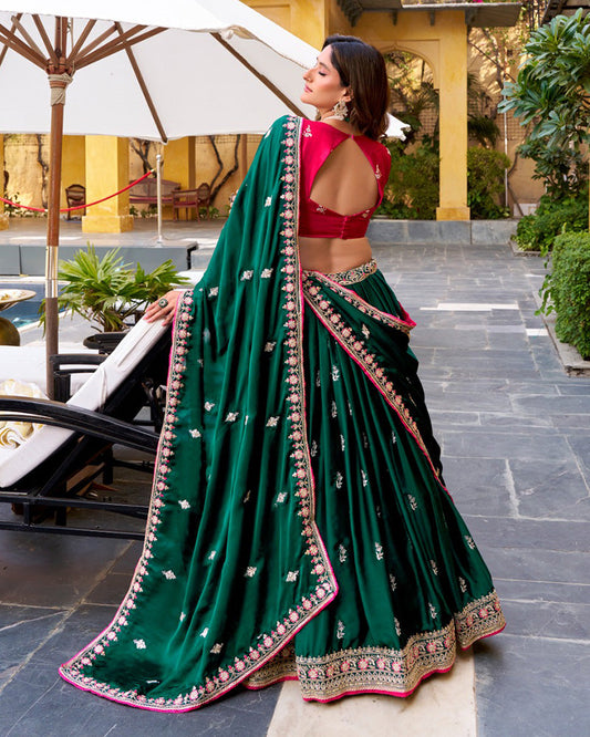 Designer Green Color Vichitra Silk Embroidered Lehenga Choli
