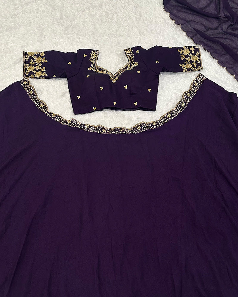 Stunning Wine Diamond Crush Silk Lehenga Choli featuring a shimmering finish, intricate detailing, and a matching unstitch blouse piece for a glamorous festive or wedding look.