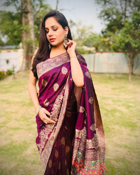Wine Color Banarasi Soft Silk Saree