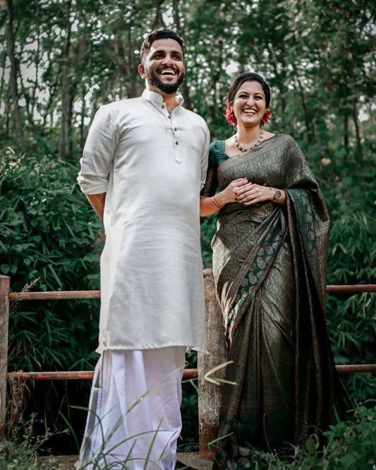 Bottle Green Color Jacquard Print Banarasi Soft Silk Saree