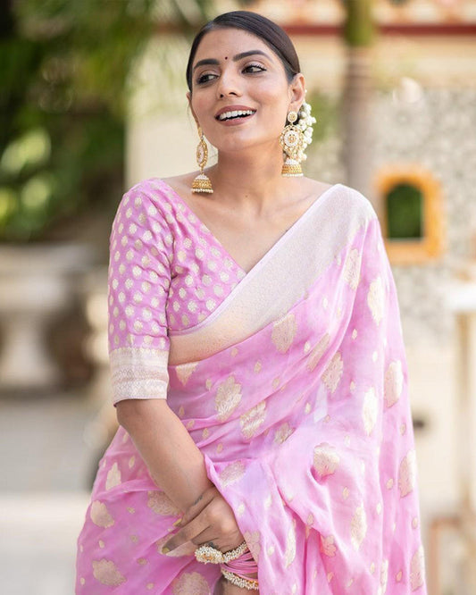 Beautiful Baby Pink Color Banarasi Jacquard Weaving Saree