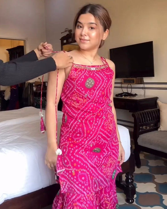 Rani Pink Color Georgette Embroidered Three Piece Kurti Suit