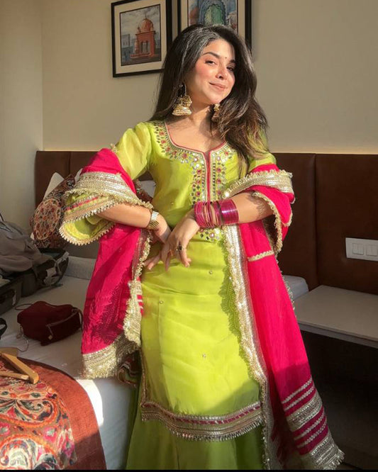 Neon Color Faux Blooming Embroidered Sharara Suit