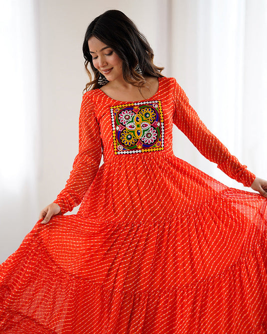 Maroon Color Georgette Bandhej Print Navratri Gown