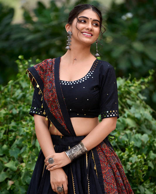 Black Color Cotton Plain Navratri Lehenga Choli