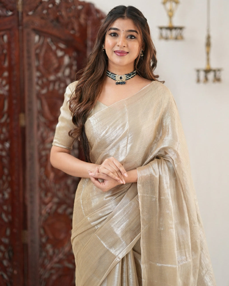 Off-White Color Handloom Raga Tissue Cotton Saree