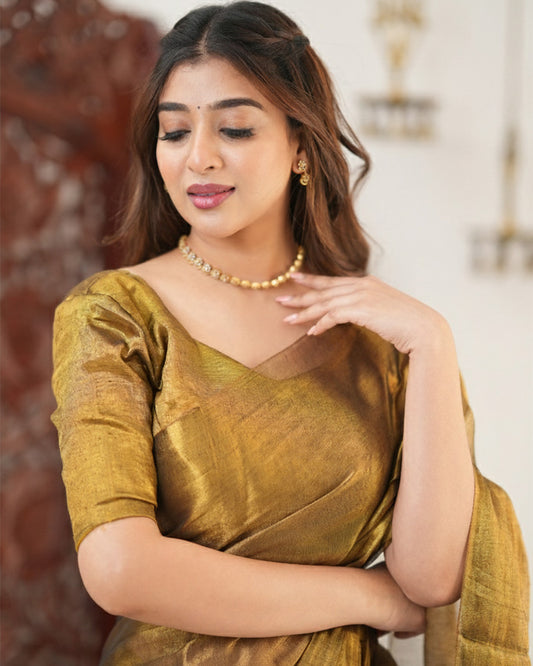 Golden Color Handloom Raga Tissue Cotton Saree