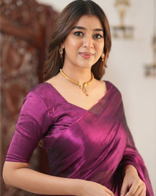 Purple Color Handloom Raga Tissue Cotton Saree