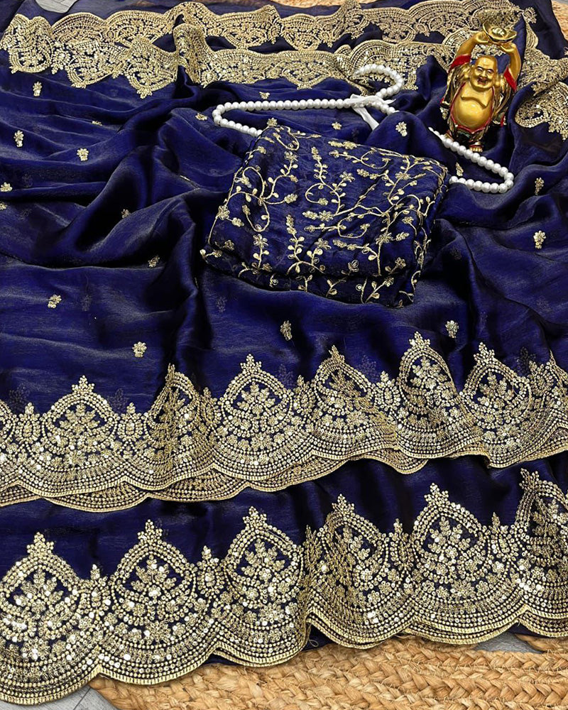 Elegant and dazzling, this 11-Color Fendi Chiffon Saree features beautiful sequin embroidery that adds a touch of glamour. Paired with an unstitched blouse, it’s perfect for parties and festive occasions.