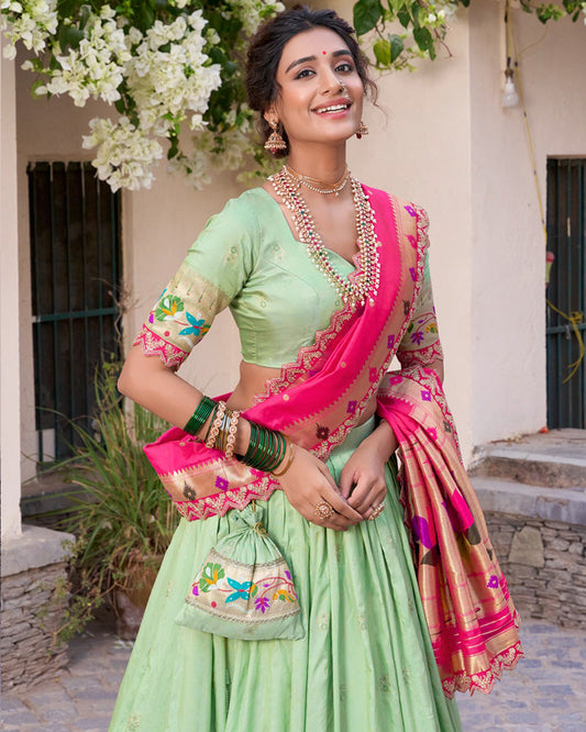 Designer Pista Color Kanchipuram Zari Weaving Half Saree
