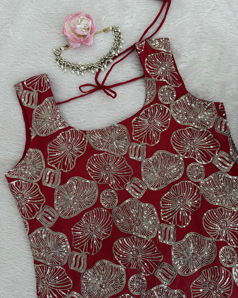Dupatta Work : 2.25 Meter With Shimmer Silk With Sequence And Thread Work With Four Side Lace Border