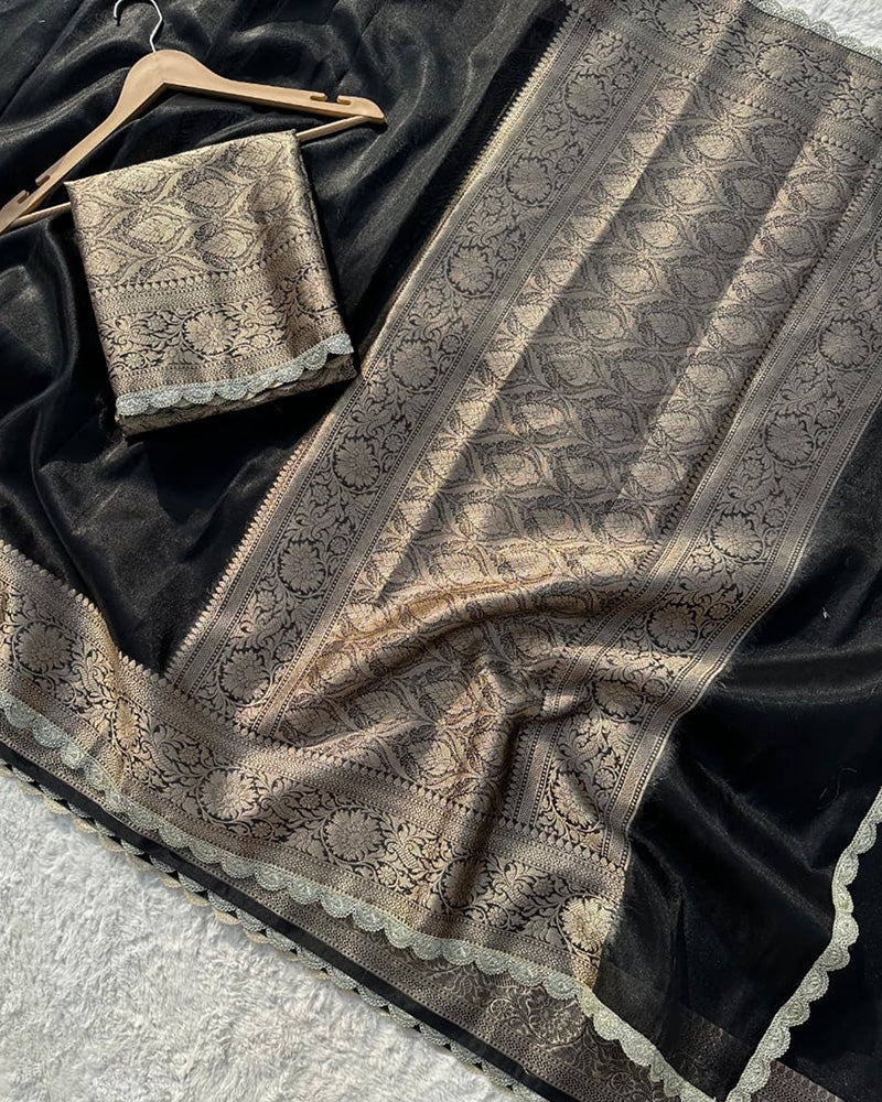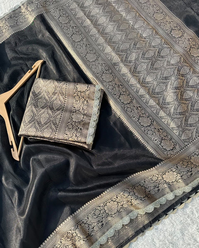 Black Color Banarasi Tissue Saree