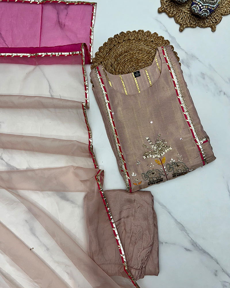 Pink Color Shimmer Silk Three Piece Kurti Suit