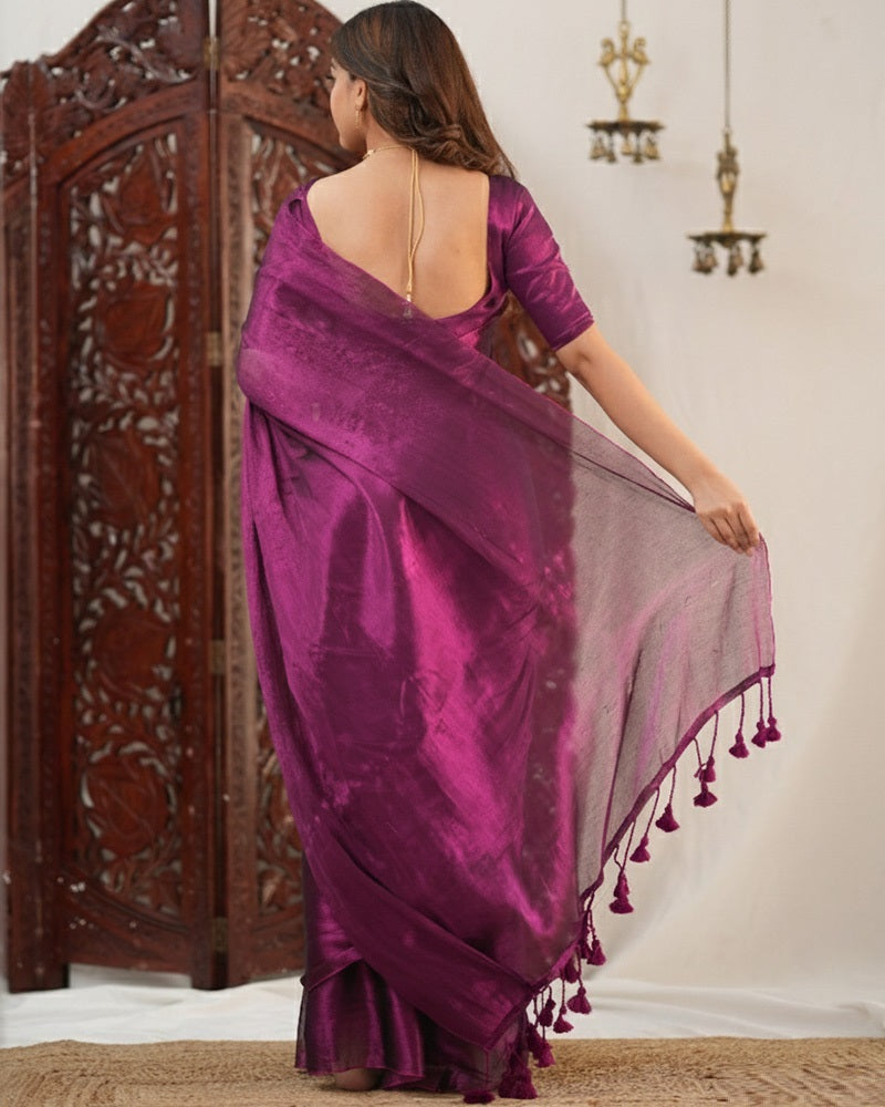 Wine Color Handloom Raga Tissue Cotton Saree